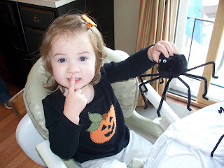 So we made 6 of these. She kept 2 and we used 4 to decorate the front entry and the fireplace. This was only after a few tears were shed because I was taking her “spider friends”. In the end she liked the idea and was OK with only having 2. Those two now look like they have been “stomped” on with 2 year old love!