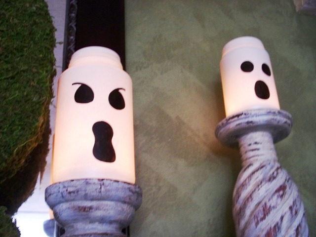 The ghost are the “yesterday’s trash”. These are made from old glass jars. I can’t take credit for this I saw these on Crafts by Amanda and thought they were WAY cute. I did change it up a bit. She used acrylic pant….I spray painted. Much faster! and I like the coverage better.