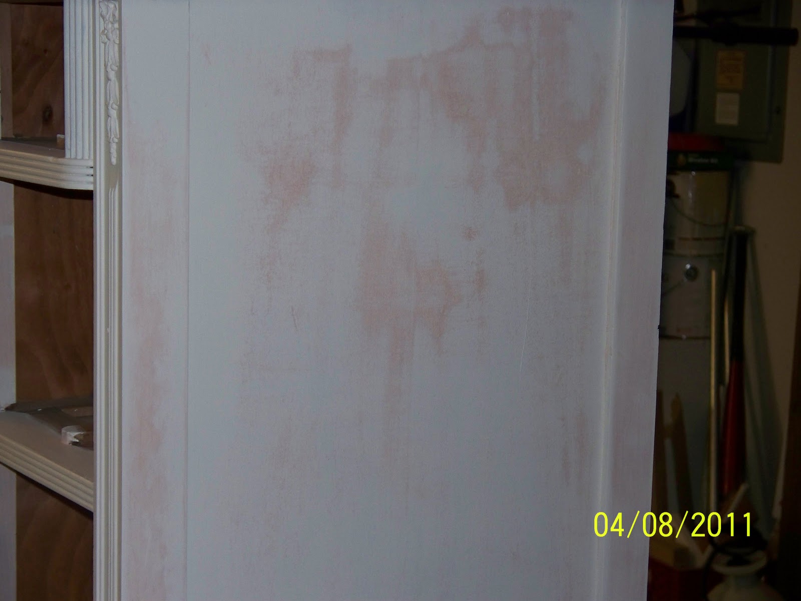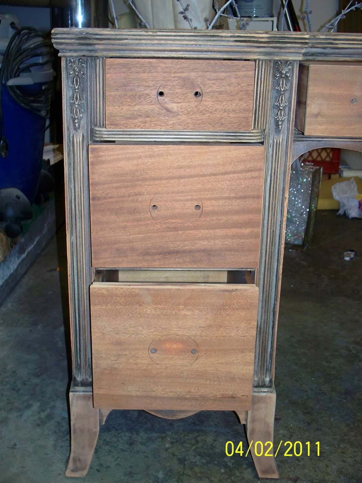 Well….I now know why this little beast was at the Goodwill Outlet! They knew something I did not! I painted, THREE, yes I said THREE coats of creamy white paint, after sanding AND priming, the varnish…wood….stain, not sure what it was, kept bleeding through. I have painted a LOT of pieces of furniture and have NEVER had this problem! GRRRRRR! Today, I said I would NOT let the Outlet Beast get the best of me. I will WIN!
