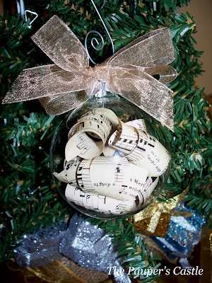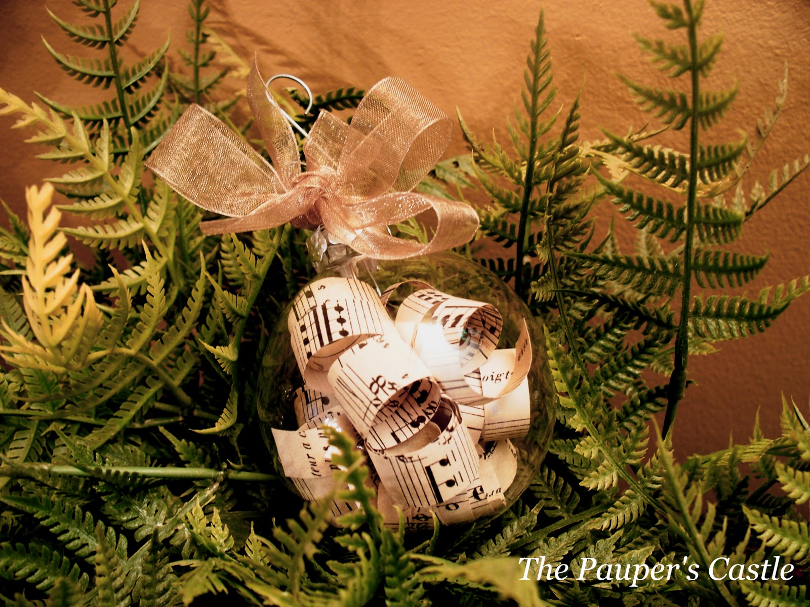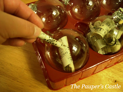 Trim the paper so that you are right next to the music print. By doing this you eliminate any blank areas once the paper is curled and inserted into the ornament.