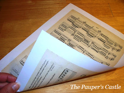 - Old music sheets, scrapbook paper that is music printed or print vintage music sheet from the Graphic Fairy. This is what I did. Then I copied the paper so it was double sided.