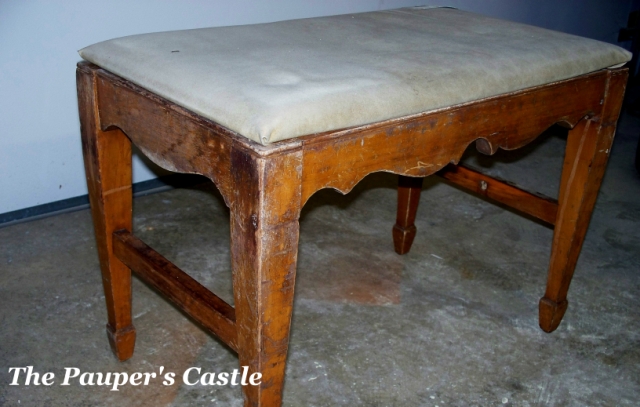 Then I recovered it with a grain sack from Columbus, OH.  The faded grain sack works perfectly with the chippy Old Fashioned Milk Paint.