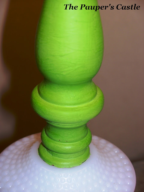 The lamp in the photo was a Goodwill purchase. I have a thing for milk glass lamps! This one however, I am not sure what they were thinking when the added the wood center. It just didn’t do it justice.
