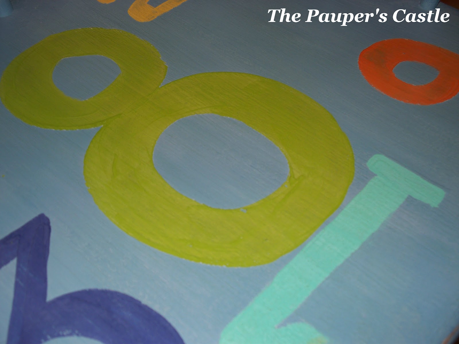 Then I free handed some numbers on with regular chalk. This works REALLY well! Once you paint in the numbers and let the paint dry, simply wipe away the chalk lines!