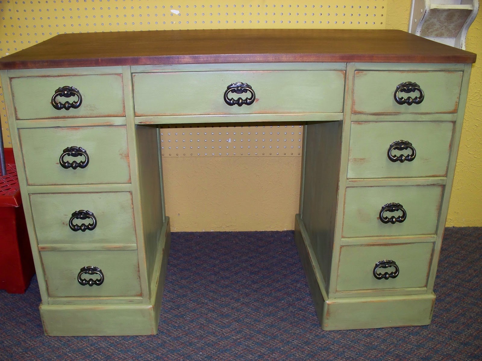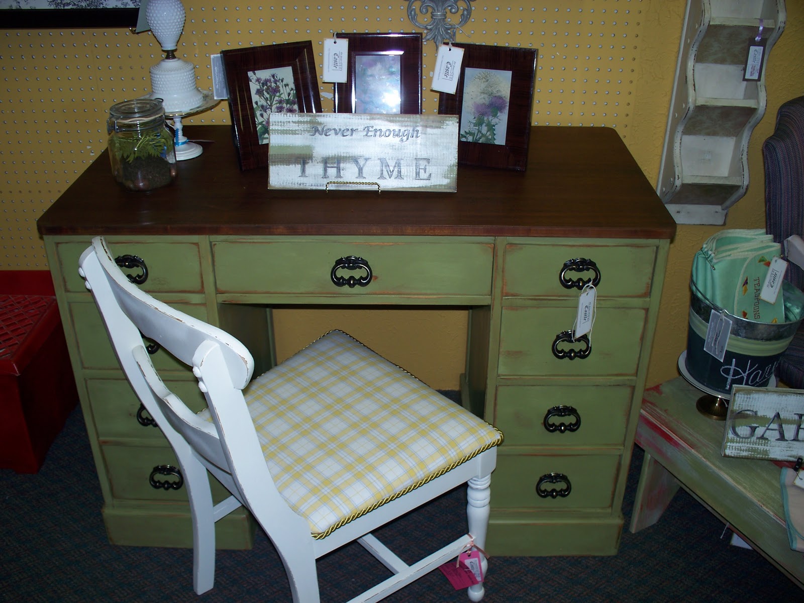 The secretary dresser selling was GREAT news! Except, I had a big hole to fill and I wasn’t going to be home for the weekend to get anything done to fill that space.  So Monday night, Tuesday night, and Wednesday night (starting all of this around 9pm after we settled our daughter in for the night) I worked on refinishing a desk we had for a couple of months in the garage.  I put the finishing touches on Thursday morning before we left town.  We squeezed in a quick trip to the booth and then off to northern Indiana for a long weekend.