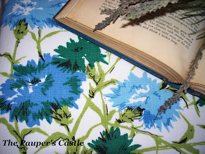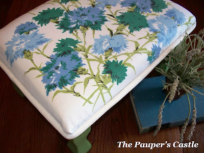 While the paint and the Satin Finish were drying I recovered the top using a vintage table cloth. This is the end result! It just makes me happy to look at it! I love the bright colors!